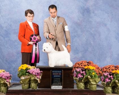 and Best Opposite Sex at the West Highland White Terrier Club of Indiana Specialty show on Friday under Judge Wood Wornall.