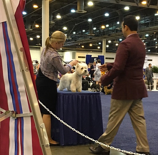 On Friday at the West Highland White Terrier Club of Indiana Specialty under Breeder Judge Wayne Kompare, Ashlie steered