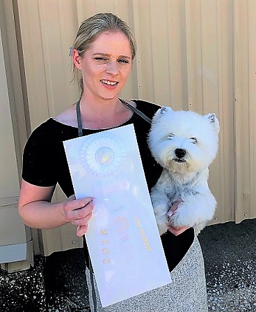 is pictured above with handler Ashlie Whitmore after winning Best of Breed and Terrier Group 3rd under Judge Ralph (Sonny)